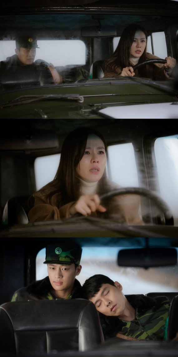앞서 윤세리(손예진 분)는 대한민국으로 돌아가기 위해 공항으로 향했다. 하지만 이를 눈치챈 조철강(오만석 분)의 지시로 인해 윤세리가 탄 차는 트럭 부대에 포위됐고, 그녀를 지키려고 몰래 뒤를 따라온 리정혁(현빈 분)이 나타나 치열한 총격전을 벌였다.
