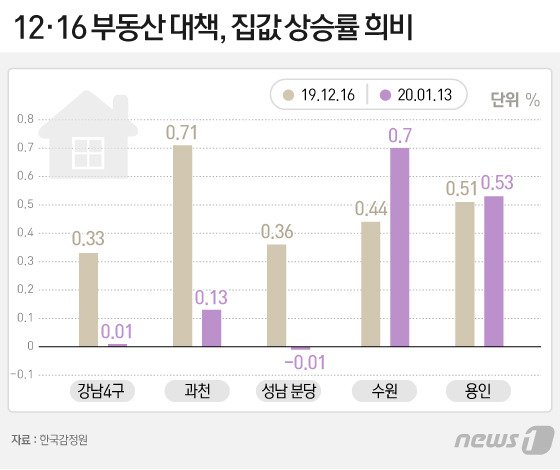 수원과 용인 두 지역과 달리 서울 강남4구(강남·서초·송파·강동구), 경기 과천·성남 분당은 12·16 대책이 빠르게 먹히고 있다. 이들 지역에서는 정부 대책이 효과를 보이는 셈이다.