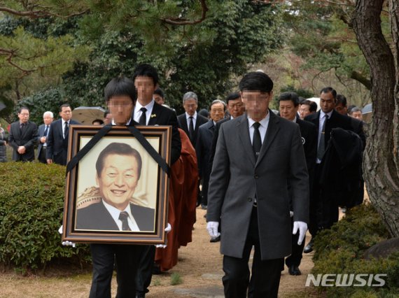 위패를 든 신동빈 롯데그룹 회장의 아들 유열씨와 신동주 전 부회장, 신동빈 회장 등 유족들도 영정 뒤를 따랐다.