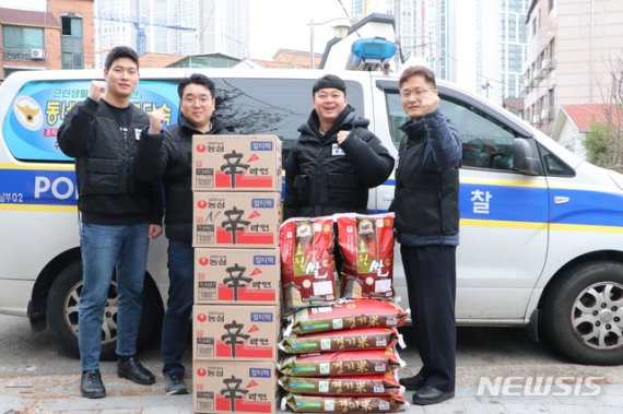 이날 오전 강력팀 형사들은 식권을 구내식당에서 쌀 120㎏과 라면 5박스로 교환해 수원남부서 관할 지역에 사는 이웃 5가구에 전달하고, 지역 치안 관련 주민들의 의견을 들었다.