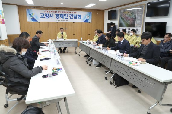 고양시는 3일 상하수도사업소 회의실에서 고양상공회의소, 고양시 기업경제인연합회 등 기업인단체 대표 30여명이 참석한 가운데 긴급 간담회를 갖고 감염병 확산 방지와 경기부양 지원방안을 마련하고자 머리를 맞댔다.