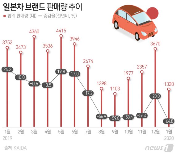 그러나 지난해 7월 일본의 대(對)한국 소재 수출 규제 등 외교적 갈등으로 일본제품 불매운동이 불거지면서 일본차량 판매도 급락했다. 일본 브랜드들은 8월부터 판매량이 전년대비 50%대 이상 감소하며 점점 입지가 줄었다.