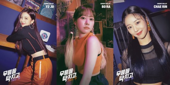 체리블렛 소속사 FNC엔터테인먼트는 지난 5일 공식 SNS 채널을 통해 체리블렛 첫 번째 디지털 싱글 '무릎을 탁 치고 (Hands Up)'의 유주, 보라, 채린의 개인 콘셉트 포토를 공개했다.