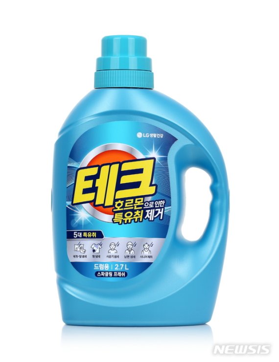 LG생활건강(대표 차석용)은 프리미엄 액체 세제 ‘테크 호르몬으로 인한 특유취 제거’(테크 특유취 제거 액체 세제)를 출시한다고 13일 밝혔다.