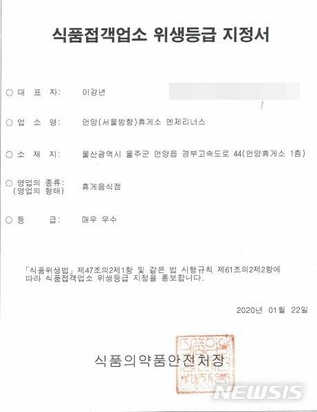 이상용 언양휴게소장은 "앞으로도 이용고객이 안심하고 먹을 수 있는 위생환경 조성을 위해 최선을 다하겠다"고 말했다.