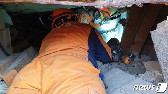 이에 앞서 오후 3시15분에는 B씨(75)가 무너진 주택 방 안에 있는 창문 근처에서 발견돼 구조됐다.