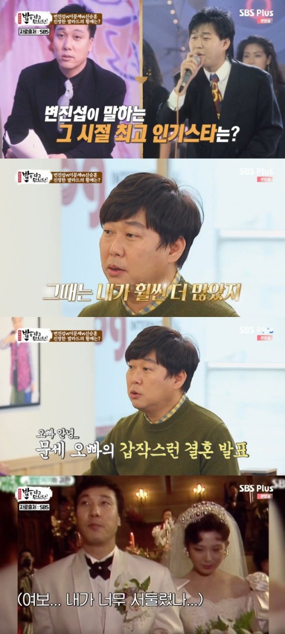 변진섭은 "(이문세와) 딱 붙었을 때 내가 왜 인기가 올라갔냐면 문세 형이 결혼 발표를 한 거다. 그때는 결혼 발표를 하면 인기가 떨어졌었다"고 설명해 눈길을 모았다.