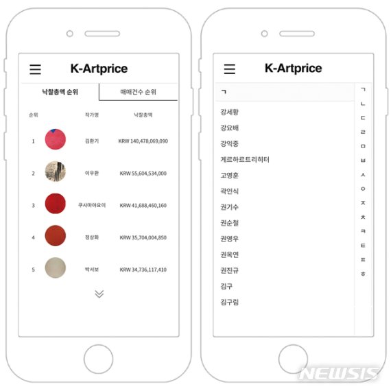 국내 최대 민영 뉴스통신사 뉴시스(NEWSIS)가 국내 언론 최초로 지난해 9월 론칭한 작품가격 사이트 '케이 아트프라이스(K-Artprice)'는 모바일 버전으로도 오픈, 편리하고 쉽게 작품가격을 확인할수 있다.