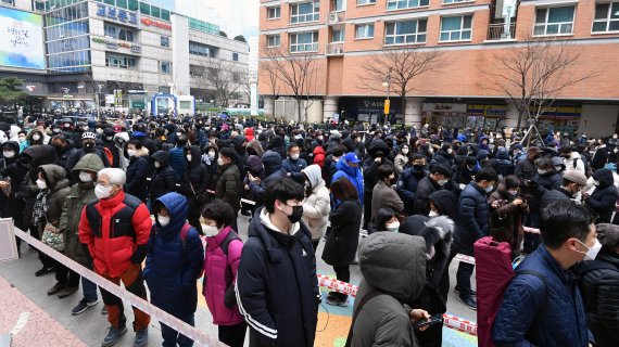 신종 코로나바이러스 감염증(코로나19) 확진자가 3500명을 돌파한 1일 서울 목동동로 행복한백화점에서 열린 마스크 긴급 노마진 판매행사에서 시민들이 마스크를 구입하기 위해 길게 줄지어 서있다. 사진=서동일 기자