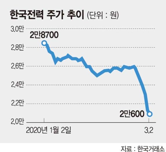한전, 올들어 주가 23% 빠져