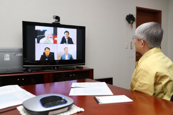 최기영 과학기술정보통신부 장관은 5일 코로나19로 인한 경기 회복과 소상공인·자영업자 피해회복 지원 방안을 논의하기 위해 이통3사 최고경영자(CEO)와 긴급 간담회를 열었다. 간담회는 영상회의 시스템이 활용됐다.