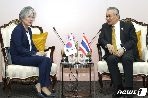 (서울=뉴스1) 민선희 기자 = 강경화 외교부 장관이 5일 돈 쁘라맛위나이 태국 외교장관과의 통화에서 태국이 한국발 입국자에 대해 합리적 조치를 취하고 있는데 대해 평가했다.
