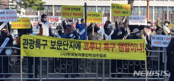 경주농어촌민박협회 회원 60여 명은 이날 경주시청에서 성명서를 발표하고 관광업계 피해 대책마련을 촉구했다.