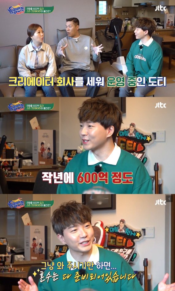 도티는 8일 오후 7시40분 방송된 JTBC '스타와 직거래-유랑마켓'에서 게스트로 출연해 "정직원은 210명 정도이고, 작년 연 매출은 600억 정도다. 회사 매출이다"라고 말했다.