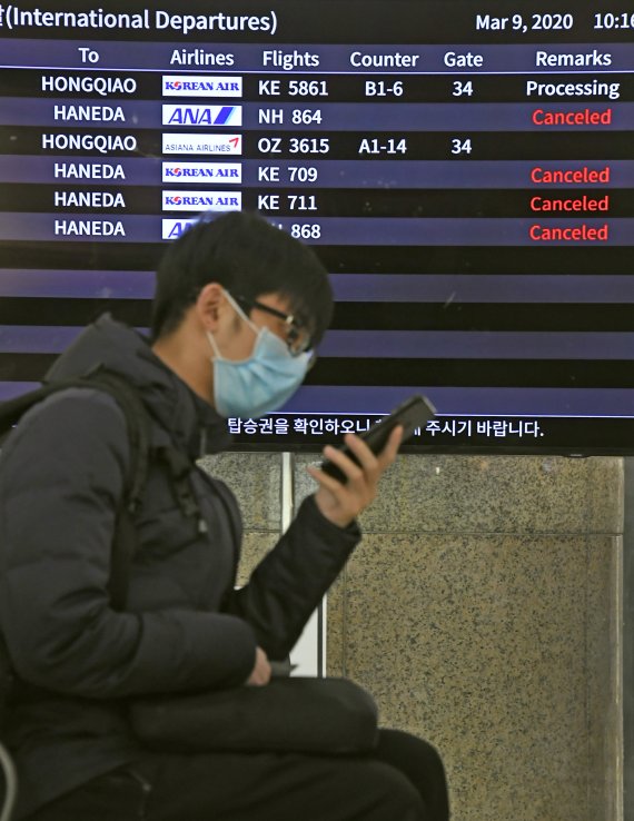 9일 오전 11시10분께 인천국제공항에 대한항공(KE722)편이 착륙했다. 일본 오사카 간사이공항에서 날아온 이 비행기에서 내린 승객들 표정에선 가족과 재회한다는 기쁨보다는 짜증이 가득했다. 코로나19 대응을 이유로 9일 0시부터 90일 무비자 입국제도가 중단되면서 본인 뜻과 상관없이 한국으로 서둘러 돌아와야만 했던 이들이 적지 않았기 때문이다.