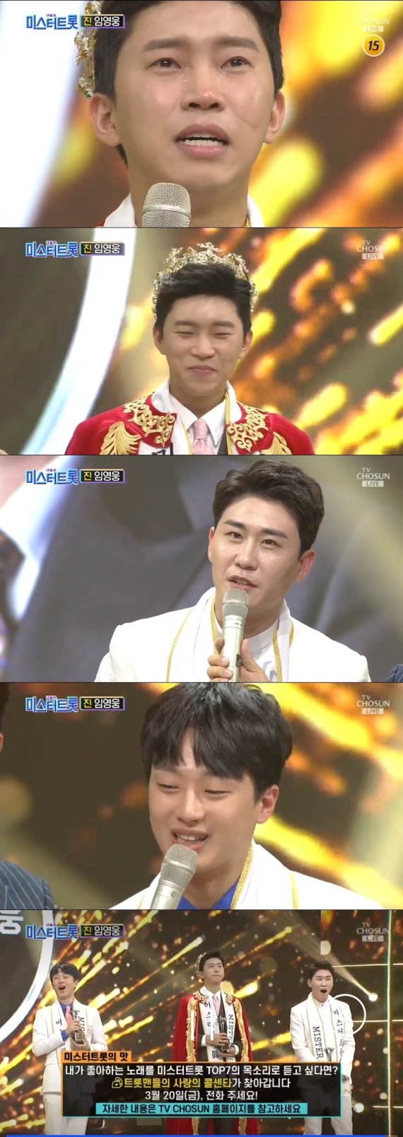 임영웅은 14일 오후 TV조선 '미스터트롯' 긴급 생방송에서 최종 우승을 차지했다.
