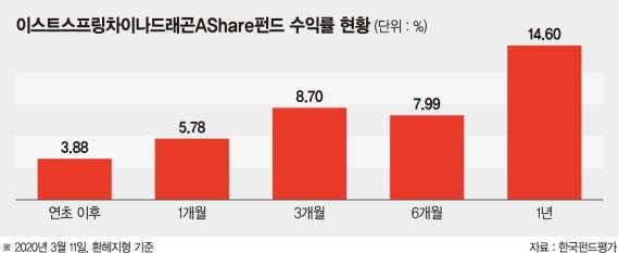 15일 한국펀드평가에 따르면 '차이나드래곤 A Share 펀드(환헷지형 기준)'의 최근 1개월 성과(11일 기준)는 5.78%로 집계됐다.