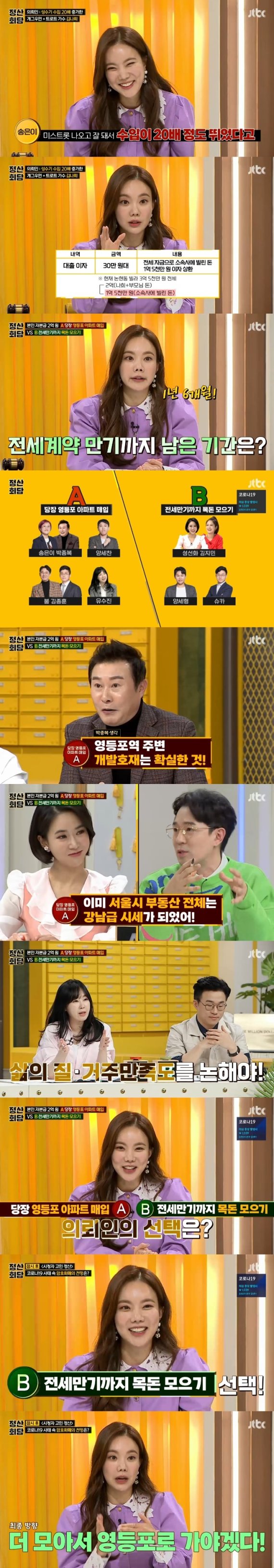 김나희가 "영혼까지 돈을 끌어모아 당장 영등포에 집을 살지, 아니면 돼지껍데기 맛집 위에서 전세 계약 만기까지 기다리다가 목돈을 모아서 나올지 고민이다. 만기까지는 1년 6개월 남았다"고 하자, 출연진들의 의견이 나뉘었다.