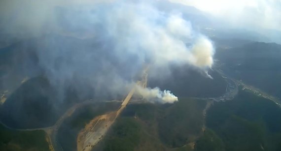 산림청과 울산시는 초대형 헬기 1대를 긴급 투입했지만 강한 바람으로 인해 진화에 어려움을 겪고 있다.