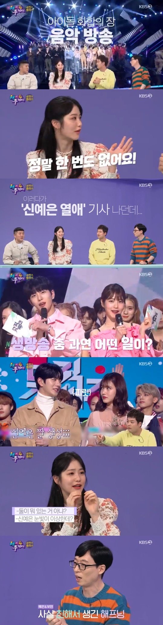 MC들은 게스트들에게 이상형과 연애관에 대해 물으면서 '뮤직뱅크' MC로 활약하고 있는 신예은에게 많은 또래들이 함께하는 '뮤직뱅크'에서 핑크빛 기류들이 없냐고 넌지시 물었다.