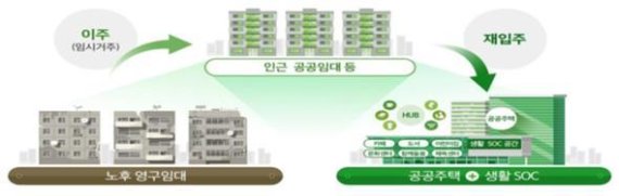 슬럼화된 영구임대주택의 외관을 교체하고 생활 SOC 등 지역 주민을 위한 편의시설을 확충해 청년·신혼부부 등도 함께 거주하는 유형 통합 단지로 재생하는 방식이다.