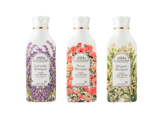 애경산업의 르샤트라 1802 섬유유연제는 고농축 프리미엄 섬유유연제로 식물유래 유연성분을 함유해 섬유를 부드럽게 유지시키고 정전기 방지에 도움을 준다. 특히 프랑스 프로방스 ‘르샤트라’ 농장에서 직접 수확한 100% 내추럴 허브에센셜 오일을 함유해 풍부하고 깊은 향이 오랫동안 유지되는 것이 특징이다. 또한 개발단계부터 미세플라스틱을 배제한 섬유유연제로 인공색소, 파라벤 6종 등 걱정되는 성분을 배제했으며, 피부자극 테스트를 완료해 온 가족 의류에 사용 가능하다.