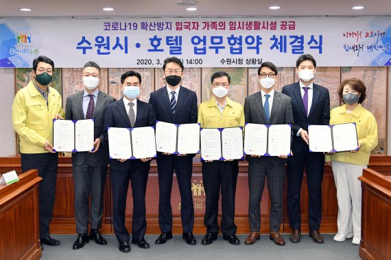 29일 수원시에 따르면 시와 밸류 하이엔드호텔 수원·이비스 앰배서더 수원·노보텔 앰배서더 수원·라마다프라자 수원·코트야드 메리어트 수원 등 5개 호텔은 지난 27일 수원시청 상황실에서 업무협약을 체결하고, 이같이 결정했다.