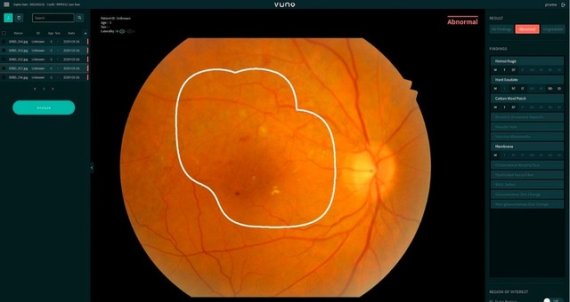 뷰노의 AI 기반 안저 판독 솔루션인 '뷰노메드 펀더스 AI™'는 수초만에 망막 안저 사진을 분석해 12 가지 이상 소견 무, 비정상 병변을 제시하는 것이 특징이다. 뷰노메드 펀더스 AI™은 10만장 이상의 망막 안저 사진을 50여명의 안과 전문의가 판독한 대규모 학습데이터를 기반으로 개발됐다. 이 이미지의 약 90%는 학습용으로 사용되었고, 나머지 10%는 모델을 테스트하는데 사용됬다.