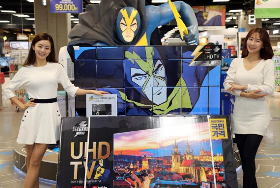 이마트는 영상 컨텐츠에 최적화된 ‘일렉트로맨 65인치(163㎝) 스마트 TV’를 55만9000원에 출시하고 13일부터 전국 이마트 매장에서 본격 판매한다.