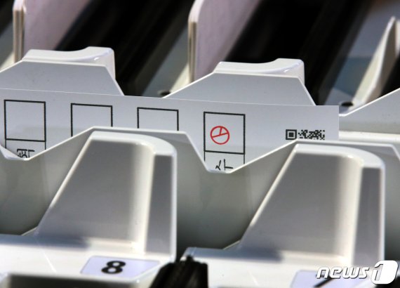 (서울=뉴스1) 한재준 기자 = 간단한 것 같으면서도 복잡한 것이 투표다. 원하는 국회의원 후보와 정당에 기표도장만 찍으면 되지만 소중한 한 표이다 보니 도장이 번지지는 않을지, 다른 칸에 인주가 번지면 어떻게 할지 신경이 쓰인다.