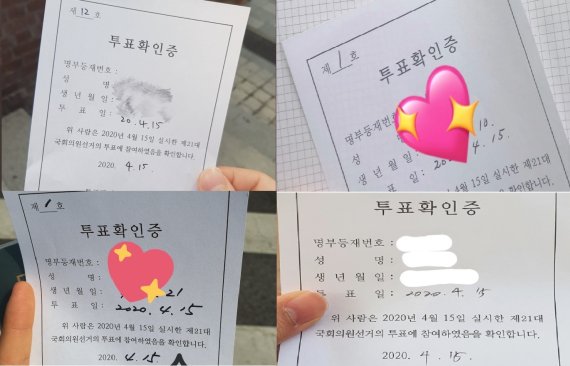 특히 이번 총선의 경우 신종 코로나바이러스 감염증(코로나19) 우려에 손등에 찍는 '인증샷'은 자제하자는 유권자들이 많아지면서 투표확인증으로 '인증샷'을 대체한 이들이 많아진 모양새다.