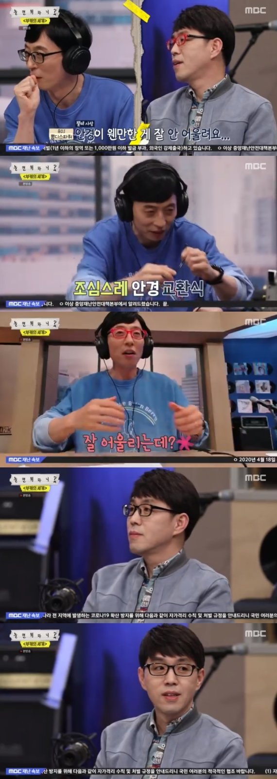 유재석은 "저는 이런 색깔 안경테가 안 어울린다"고 했지만, 의외로 잘 어울리는 모습을 보였으며 이동진 평론가 역시 유재석의 안경이 잘 어룰린다는 평을 들었다.