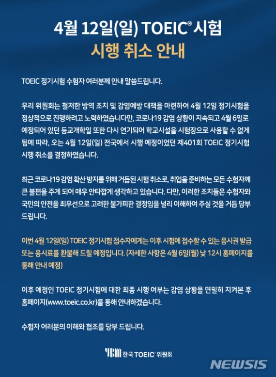 신종 코로나바이러스 감염증(코로나19) 사태로 각종 공인어학시험 일정이 연기되면서 취업과 채용에 문제가 생길수 있다는 우려에 따른 조치다.