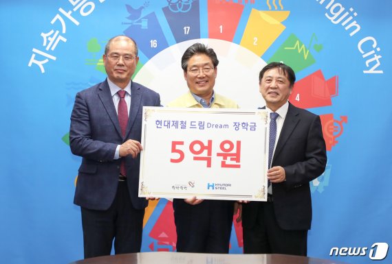(당진=뉴스1) 김태완 기자 = 현대제철이 29일 당진시청을 방문해 당진지역 학생들을 위해 5억 원의 장학금을 전달했다.
