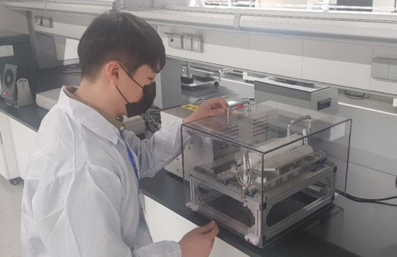 지난 8일 찾은 서울 마곡동로 코오롱 원앤온리타워의 코오롱인더스트리 연구소는 코로나19 여파로 마스크 착용 의무, 발열 체크 등 외부인 출입절차가 엄격했다. 극비 보안시설인 제작동은 볼 순 없었다. 대신 시제품을 테스트하는 평가동에서 코오롱인더스트리의 미래 핵심 사업인 CPI의 청사진을 엿볼 수 있었다.