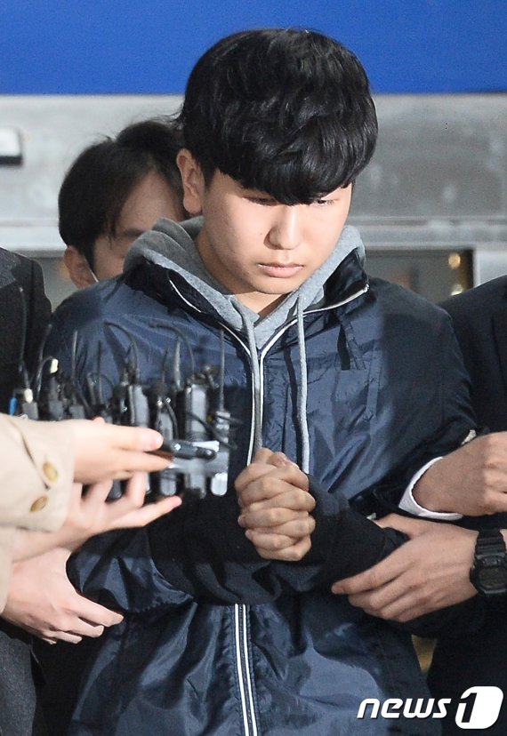 텔레그램 '박사방'에서 운영자 조주빈을 도와 대화방 운영 및 관리에 관여한 공범 '부따' 강훈이 17일 오전 서울 종로경찰서에서 검찰로 송치되고 있다. 2020.4.17/뉴스1 © News1 박지혜 기자