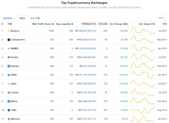 웹트래픽, 유동성 기준으로 거래소 순위 재산정 결과<BR>