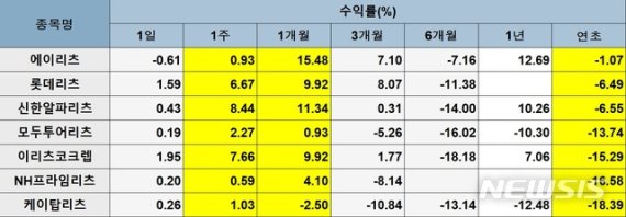 1개월 내 공모리츠 수익률은 에이리츠 15.48%, 롯데리츠 9.92%, 신한알파리츠 11.34%, 모두투어리츠 0.93%, 이리츠코크렙9.92%, NH프라임리츠 4.10%, 케이탑리츠 -2.50% 등으로 반등 국면에 접어든 것으로 분석된다.