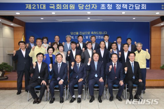 [청주=뉴시스] 임선우 기자 = 충북 청주시는 28일 21대 국회의원 지역구 당선자들과 정책간담회를 열고 지역 현안을 공유했다.