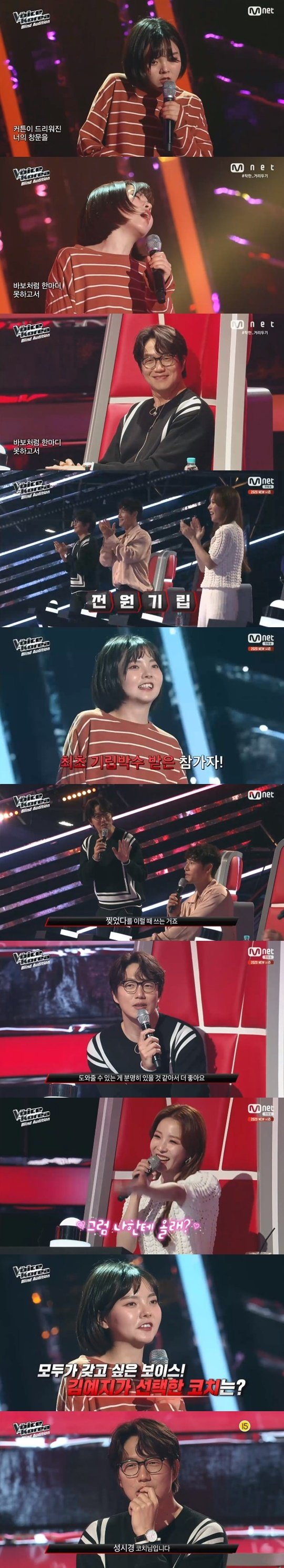 김예지는 성시경을 선택한 이유에 대해 "제일 먼저 저에게 확신을 주셨고, 발라드를 부를 줄 알지만 너무 발라드로만 안 해 주실 것 같았다. 코칭을 잘해줄 것 같았다"고 전하며 앞으로의 활약에 기대감이 더해졌다.