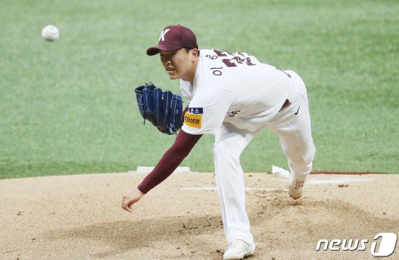 (서울=뉴스1) 황석조 기자 = 떠오르는 영건 선발투수들의 맞대결은 기대에 미치지 못했다. 키움 히어로즈 이승호는 조기 강판됐고 KT 위즈 배제성은 8점차 리드에도 진땀을 흘렸다.