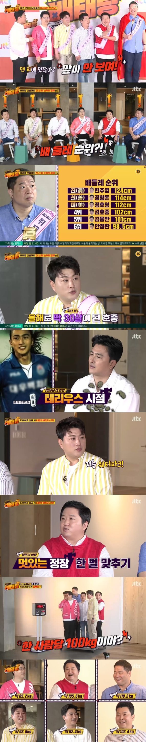 이날 멤버들은 '배 둘레' 순위를 공개하며 등장했다. 그 결과 현주엽이 124㎝로 '진'이었다.