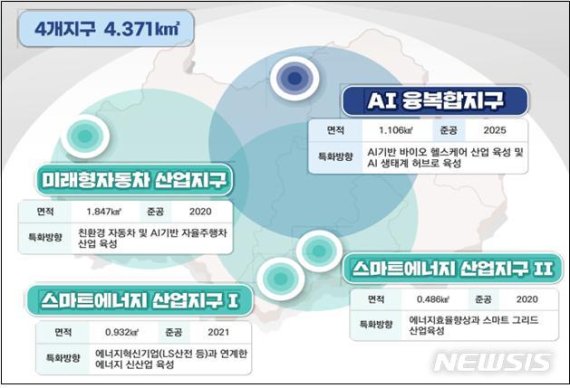 광주 경제자유구역은 크게 미래형 자동차 산업지구, 스마트에너지 산업지구, AI 융복합지구로 나눠진다.