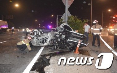 또 이들이 타고 있던 승용차와 구청 청소차량 및 도로시설물 일부가 파손되는 재산피해가 발생했다.