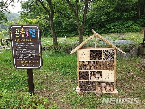 [군포=뉴시스] 박석희 기자 = 경기 군포시는 각종 곤충들의 안전한 서식과 시민들의 생태교육을 위해 관내 초막골생태공원에 ‘곤충호텔’을 설치했다. 곤충들이 농약을 피해 편안하게 서식할 수 있도록 만들어진 공간이다.