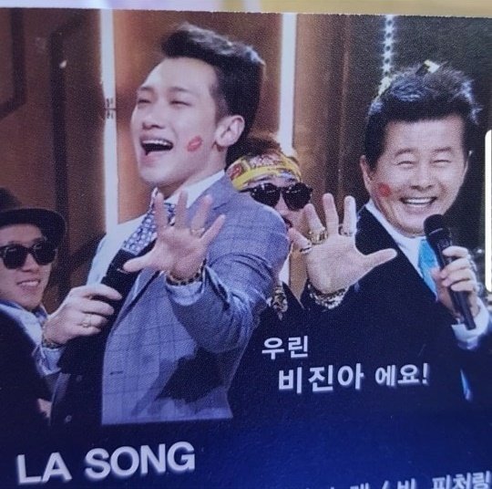 공개된 사진 속에서는 지난 2014년 발매된 비의 정규 6집 '레인 이펙트'(RAIN EFFECT) 더블 타이틀곡 '라 송'(La Song) 활동을 함께 한 비와 태진아의 모습이 담겨져 있다. 당시 '비진아'(비+태진아)로 불리며 큰 인기를 끌었던 두 사람은 '라 송'에 태진아의 히트곡 '동반자'를 섞은 패러디 영상이 화제를 일으키며 듀엣 무대까지 오른 바 있다.