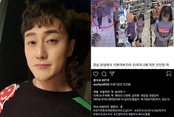 이에 해당 뉴스를 접한 개그맨 김원효는 '쓰레기 같은 인간들' 이라는 제목의 글을 자신의 SNS에 남기며 아동학대 사건에 분노했다.