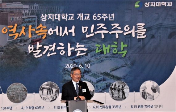 이날 정대화 상지대학교 총장은 65주년 개교 기념식사에서“ 1년간의 준비를 거쳐 지난 3월 1일자로 통합 상지대학교가 출범, 우리는 올 가을 늦지 않은 시기에 공영형 사립대학이 되어 있는 우리 대학의 모습을 보게 될 것.”이라고 말했다.