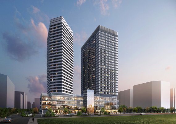 서울 강동구 명일동 중심 상업지역에 위치한 주양쇼핑 재건축 사업은 지하 4층~지상 8층 상가 건물을 지하 7층~지상 29층 2개 동 주상복합시설로 재건축한다. 내년 하반기 착공에 들어가 2024년 준공예정이다. 지상 4층까지는 상가로, 5층부터는 주거용 오피스텔(768실)로 구성된다.