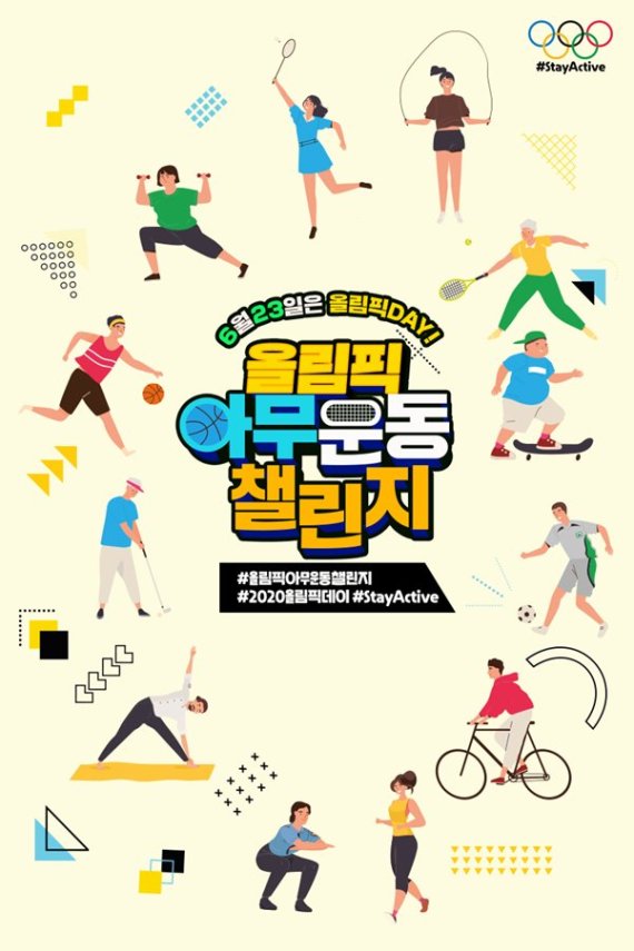특히 올해는 대한체육회 창립 100주년이 되는 의미가 있는 해로 보다 많은 국민들이 행사에 참여할 수 있도록 ‘올림픽데이’를 주제로 한 비대면 형식의 SNS 참여 이벤트인 “올림픽 아무운동 챌린지”를 진행한다. 챌린지는 23일부터 7월 7일까지 2주간 온라인으로 진행한다.